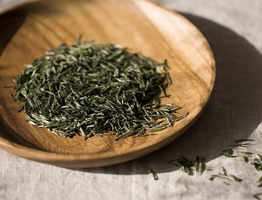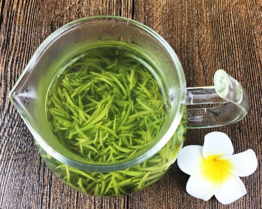 2、宜興毛尖綠茶標(biāo)準(zhǔn)的以一芽一葉和一芽二葉為主,條形緊直,形似針形,外形鳥黑油潤,略有白色絨毛,香氣干聞清香嫩香明顯。用90至95度的一沸帶魚泡眼的純凈水沖泡三克的干茶宜興毛尖,細(xì)聞香氣清爽,茶湯嫩綠明亮,滋味鮮爽,口腔頓感甘而清洌。